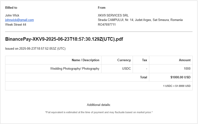 - Once a payment is initiated, both you and the company receive an email containing all payment details and useful links. This ensures that even if the billing page is closed, all necessary information is readily available. The email also includes a PDF attachment with the payment details and links for easy reference and record-keeping.